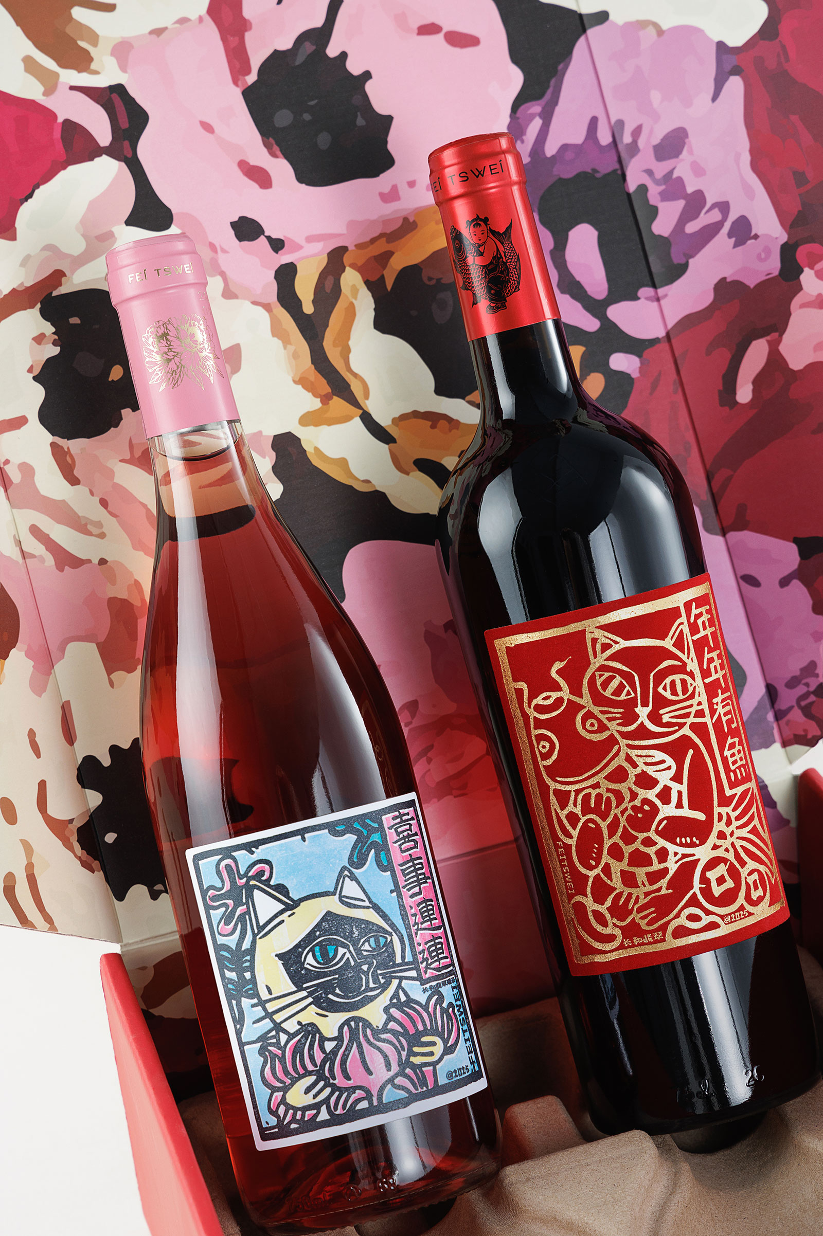 在2025的新年,中国葡萄酒的翘楚--长和翡翠酒庄,推出一对桃红和干红葡萄酒,将最好的祝福送给每一个认真生活的你们。 喜事连连 CC是我们酒庄的驻店猫咪,亲自出场,手捧鲜花,祝福大